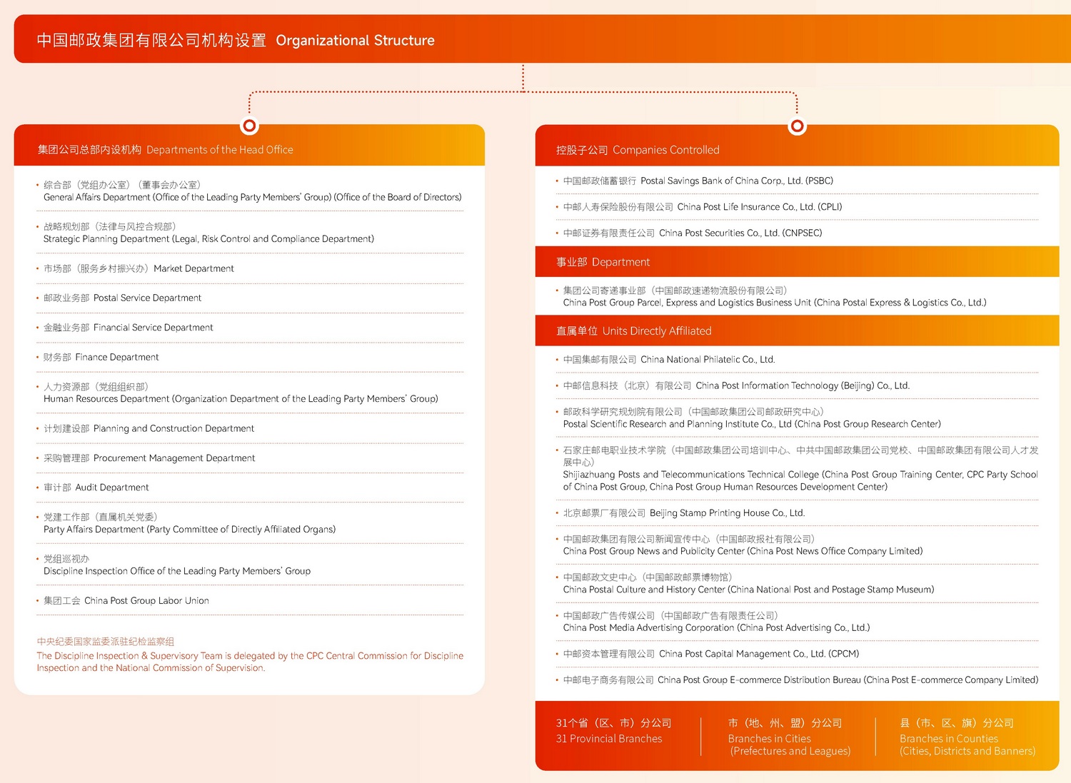 中国邮政集团有限公司机构设置