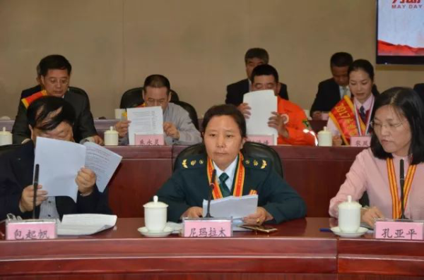 尼玛拉木作为邮政系统代表在座谈会上发言