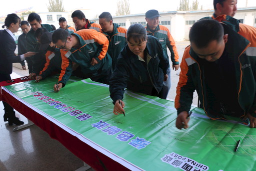 10月19日,内蒙古自治区阿拉善盟邮政分公司党委、工会和团委联合开展了“绿色邮政建设行动”暨“安全文明出行”倡议活动,共计100余人参加此次活动。在现场,阿拉善盟分公司宣读了《绿色邮政 绿色发展 邮我先行倡议书》《阿拉善盟邮政分公司车辆绿色安全文明出行承诺书》,还组织了“绿色邮政建设和安全文明出行”签字仪式和废旧包装箱回收活动。阿拉善盟分公司通过对外推广+对内践行的方式,积极开展绿色包装、绿色宣传、绿色运行、绿色经营等活动,让绿色发展理念深植企业,力争通过3年时间让阿拉善盟分公司形成人人争做“绿色运营践行者,绿色生活推动者,绿色生态守护者,绿色品牌塑造者”的良好风尚。 □巴根  摄影报道