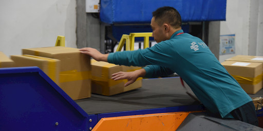 走进包裹处理场地,平时在上午略显冷清的设备上,到处可见大大小小的包裹随着机器皮带流动着。在皮带分拣机前,鲍光前遇到了一群身着红马甲的邮政人。“感谢各位党员志愿者今天来中心局帮忙网运工作。这会儿皮带分拣机缺少供件人员,5个人留在这儿,其余的和我一起去帮忙把刚送来的邮件拉到分拣区来。”说完,鲍光前又带着大家往场地的另一端跑去。