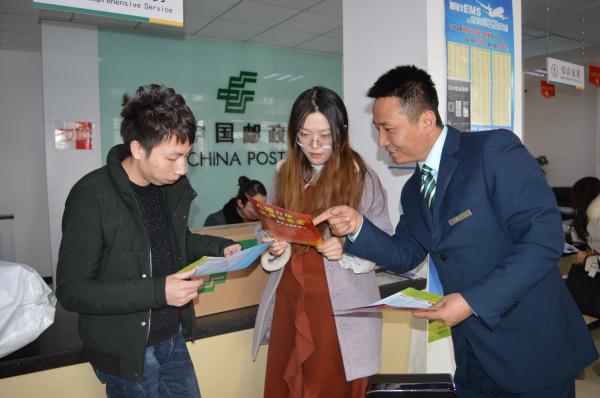 工作人员向客户宣传邮政产品