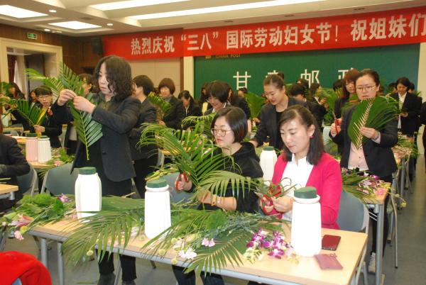 为展现新时代女职工风采,推进企业文化建设,省分公司组织机关全体女职工开展了庆“三?八”插花艺术培训活动。此次活动以“穿暖花开、诗情花艺”为主题,邀请了国色天香花艺公司老师为大家讲解了插花艺术的由来、花道美学、东方插花的特点、插画的作用以及插花的基本知识。在活动现场,大家将一束束百合、康乃馨、栀子花、黄金球等花材通过修剪插进花瓶里,体验着完成一个花艺作品带来的乐趣和享受。