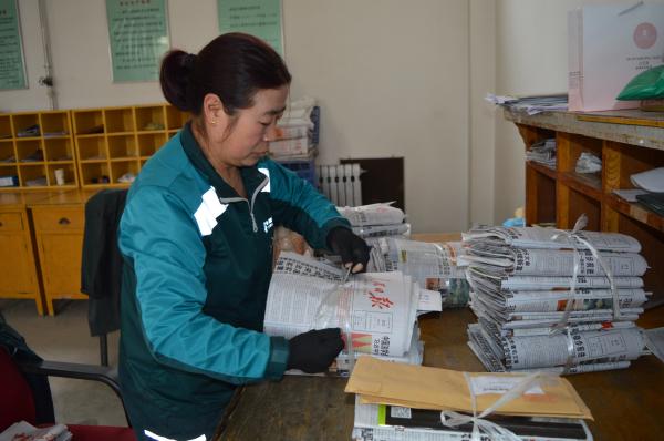 消瘦的身材、不苟言笑的面容,是李红霞留给记者的第一印象。早晨7点,李红霞早早来到投递中心为出班做准备。“我平时总是前晚上提前把报纸分拣好,但昨天因为投递量太大了忙完已经到晚上11点了,趁现在还有一些时间我先把报纸分拣一下。”李红霞快速地将报纸放置到相应格口,嘴里还不停地念叨着段道地址。响起的电话铃声打断了李红霞分拣的节奏,原来藏吧啦服装厂与她约定好的揽收时间到了。“客户的电话就是命令。”李红霞认真地说。