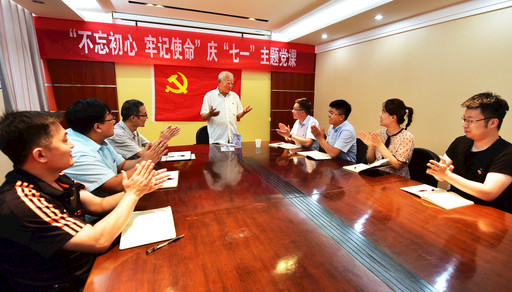 值建党98周年及全国上下开展“不忘初心 牢记使命”主题教育之际,江苏省丰县邮政分公司邀请有50年党龄的退休老党员刘素芹同志为党员干部上了一堂生动的党课。他通过讲述自身工作经历,告诉大家要坚定信念,不忘初心,并希望广大党员从我做起,为企业发展作出新的贡献。图为6月26日,73岁的老党员刘素芹与大家交流入党初心及体会。