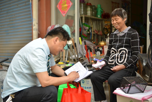 否定、完善,再否定、再完善,奔牛支局一路向好。图为奔牛支局局长唐明走访沿街商户。