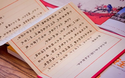 山东大学本科招生办负责人宋沁潞告诉记者,这份录取通知书从开始制作到完成用时近3个月,经过几十遍的修改琢磨。在制作时,学校设计的初衷便是传承。通知书特别采用了传统的册页装设计,传承了中国传统文书装订方式,表现出“一页装世界,一页看天下”的气派。设计中使用了几位书法家的书法作品,将中国方块文字的美感体现得淋漓尽致。