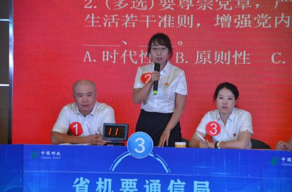 此次竞赛主要围绕习近平新时代中国特色社会主义思想和党的十九大精神、党章党规、习近平总书记系列重要讲话以及中央和集团公司党组重要会议和文件精神等内容展开。经过前期海选、预赛等环节的层层选拔,最终省分公司机关代表队、省寄递事业部、省会计核算中心、省人力支撑中心、兰州分公司、兰州邮区中心局6支代表队进入决赛。