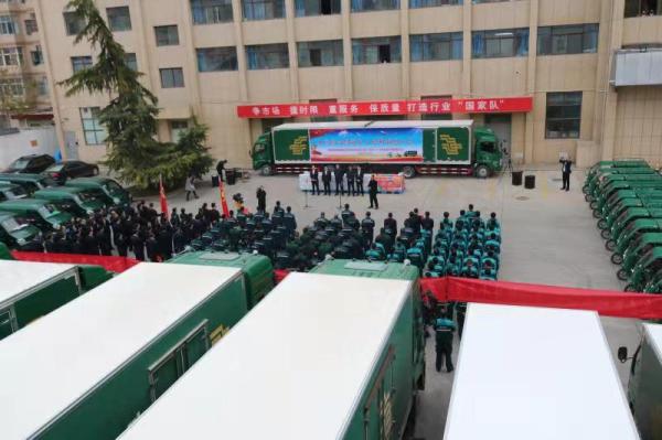 11月8日,平凉市分公司院内党旗飘扬,员工戎装待发。该分公司党委、行政、工会、共青团联合举办了“双十一”旺季生产誓师大会。市邮政管理、崆峒区总工会以及该分公司有关负责人和各部门员工共计200余人参加了誓师动员。
