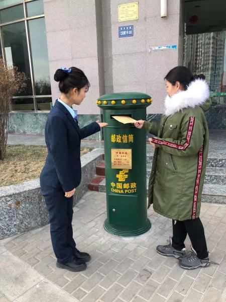 12月13日,在嘉峪关邮政雄关广场支局门前,刘女士拿着刚刚在营业厅买到的信封和邮票,粘贴封装好信封后,在营业员的建议下体验了一把信件投进邮筒的感觉:“这些绿色的邮筒是上世纪90年代以前的通信工具,正是我们年轻时经常给家里寄信的那种邮筒,复古而简洁,有一种不可名状的亲切感。”