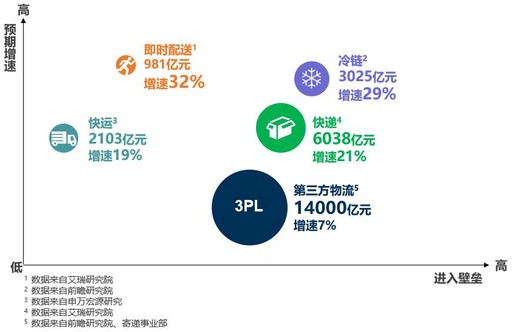图5 综合物流细分市场预期增速及进入壁垒