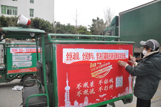2月6日,四川省资阳市邮政寄递事业部雁江区营业部大力配合区政府防疫宣传,为投递三轮车安装疫情防控宣传小喇叭30个、宣传标语60幅,并通过投递人员发放疫情防控宣传DM1万份。 □罗军  摄影报道