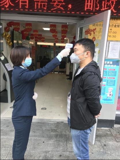 新市街营业所是城区春节期间指定对外营业的网点,工作人员每天按时对设备、场所进行消毒,对进入网点的客户量体温、登记信息、业务办理等工作有条不紊进行。