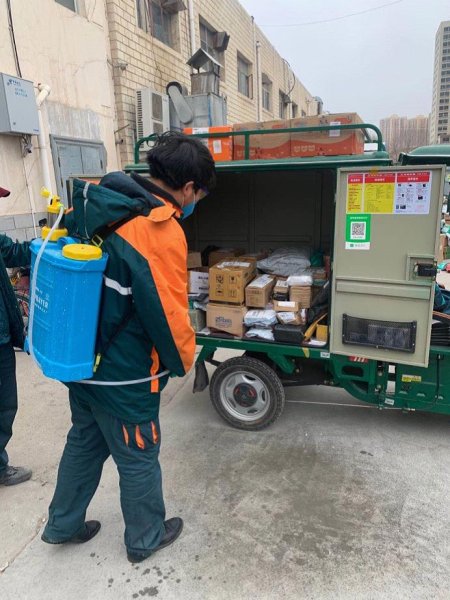 同时,为助力新冠肺炎防控工作,让西固封闭小区居民吃上放心菜、平价菜,廖卫主动联系社区,将二维码张贴至各封闭小区,让居民通过邮政“预约式”配送服务,解决“菜篮子”问题。每日蔬菜箱一到货,廖卫便第一时间安排人员进行专项投递。在配送过程中,廖卫严格落实疫情防控要求,规范佩戴口罩,定时对配送工具进行“一送一消杀”。并及时与收件人电话联系,确定投交方式,尽可能投送至小区门口,实行“无接触”配送,避免出现交叉感染风险。仅一周时间,西固区分公司为辖区内居民配送蔬菜、米面油870件,合计13.5吨。