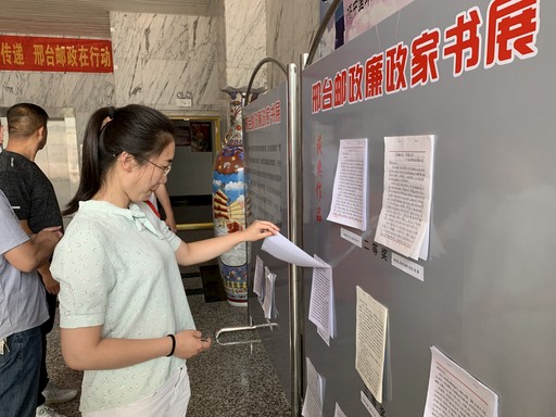 6月15日,“邢台邮政廉政家书”展板在河北省邢台市邮政分公司一楼大厅展出,吸引不少邮政员工前来阅读。