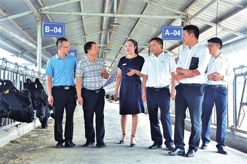 图为该分行信贷人员深入农民合作社养殖基地了解需求,为客户提供资金支持。