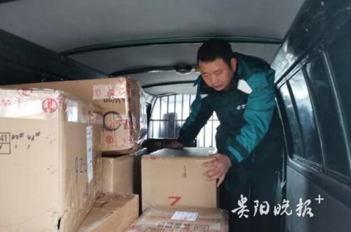 记者在观山湖区西南商贸城物流园 C 区见到熊庆国时,他刚从园区揽收了 20 余箱货物,运回转运中心准备装车。一身绿衣的他看起来并不强壮,可是从小面包车里抱出近 20 公斤的箱子却面不改色,两三步的距离,再将箱子举过头顶,放到厢式货车上去,短短 10 分钟,他的脸上就已经全是豆大的汗珠。