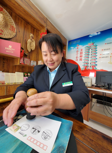 近年来,甘肃白银市和会宁县努力打造红色文化,当地邮政成立了会宁会师主题邮局,开发了会师主题邮品,通过邮品宣传、传承会师精神。一位骑行到会宁的骑友特意来到主题邮局,在会宁会师明信片上盖上邮戳,并将明信片投入邮筒。“在明信片上盖上邮戳,才算是真正到会宁打卡过,看见明信片就会想起红军会宁会师这段历史。”