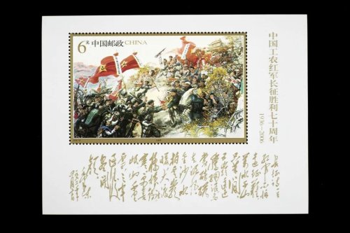 2006年10月22日,《中国工农红军长征胜利70周年》纪念邮票发行。邮票内容分别为《送别》《遵义会议》《飞夺泸定桥》《过草地》,小型张则以国画《大会师》为主题图案。
