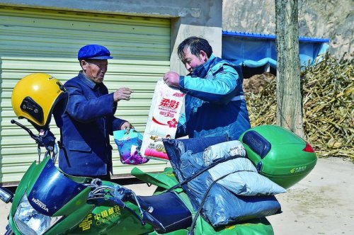 在赵满明的摩托车上,经常会出现与工作“不相符”的物品,有时是卫生纸等生活用品,有时是瓜果蔬菜,这都是他帮投递区域内生活不便的群众代买的物品。“我每天都来往在镇上,帮他们代买一些生活用品,都是举手之劳。”赵满明轻描淡写地说。