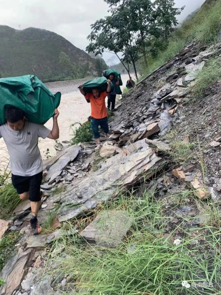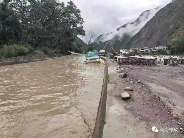 文县分公司组织发动党员与汛期应急人员组成应急小组赴灾情一线,到达现场立即进行邮件转运,应急小组每天早上6点从文县出发到达位于距离中断现场3-4公里以外的下游村庄,沿着道路中断后当地老百姓行走的临时路线,通过人工翻山转运当日进出口邮件,19日河水稍缓又采用大型工程机械进行转运。截止23日共转运党报党刊2245余份、邮件1956余件,第一时间确保报刊、邮件及时达到邮政所进行投递。