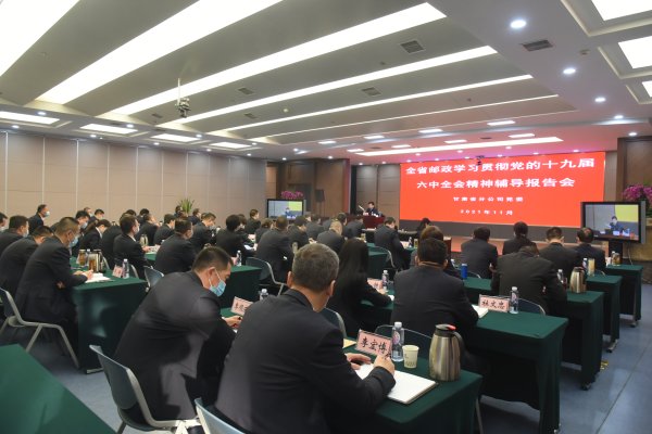 11月26日,省分公司召开全省邮政学习贯彻党的十九届六中全会精神辅导报告会,邀请兰州大学博士生导师刘先春教授对十九届六中全会精神进行了辅导解读,深刻阐释了六中全会、《历史决议》的重大意义和主要内容,教育引导大家以更加昂扬的姿态迈进新征程、建功新时代,推动全省邮政高质量发展。