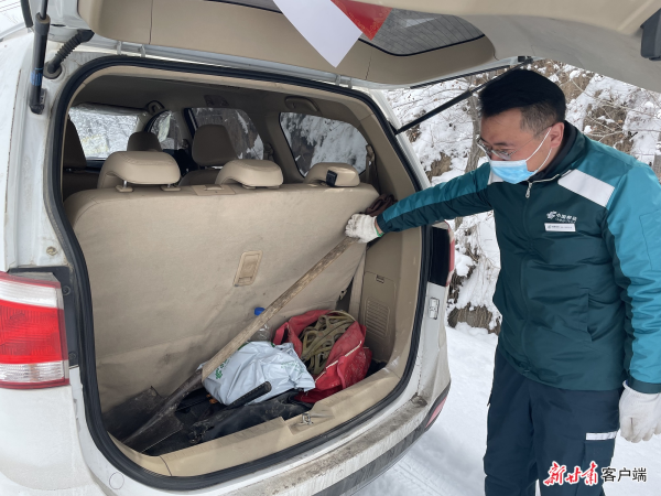 王顺成习惯随车带着铁锹、防滑链等
