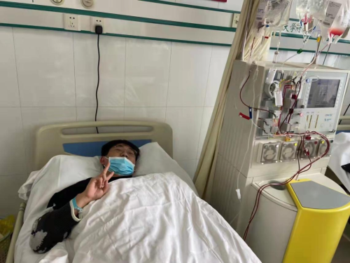 图为马广原在医院进行造血干细胞采集