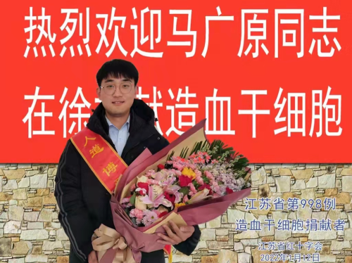 2018年,在一次无偿献血时,马广原看到招募造血干细胞捐献志愿者的海报,于是,在医务人员的帮助下,读大三的马广原毅然接受血液采样,加入中华骨髓库成为一名造血干细胞捐献志愿者。
