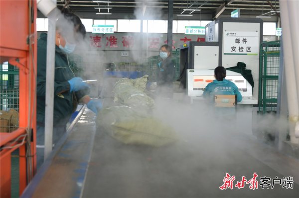经过消毒的邮政快递,一件一件寄往全国各地。
