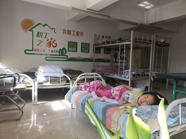 因疫情原因,小孩无人照看,只能和大人吃住在单位