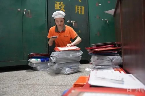 工作人员正将录取通知书进行分拣(央广网记者 李芳森 摄)