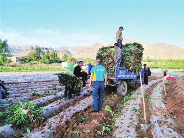今年6月10日,红古区邮政分公司抽调12名工作人员,迎着朝霞再次赶往红古区红古镇薛家村,帮助农户采挖红叶青笋。