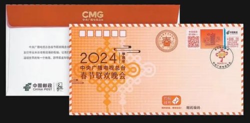 这款央视春晚在甲辰龙年首次面向全球发行的春晚邮资纪念封,将为全世界共庆中国新年的朋友们带去来自春晚现场的祝福。纪念封由一枚专用纪念邮资信封和一枚明信片组成,同时首次发行春节联欢晚会防伪邮资机签,并为春晚设计启用了红色及三色文化日戳,信封、明信片及邮资机防伪签使用了特殊工艺,极具收藏价值,因此受到广泛关注。