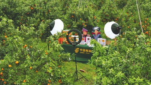 南宁邮政主播在武鸣沃柑基地直播带货。□中国邮政报记者 贾红伟 摄