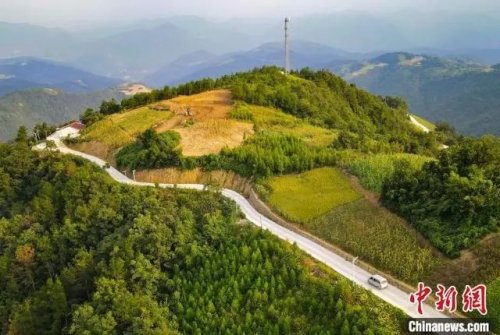 黄德印驾驶面包车穿行山路。(无人机照片)张倩龙 摄