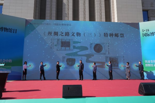 5月18日国际博物馆日,《丝绸之路文物(三)》特种邮票首发仪式在甘肃省博物馆举行。该套邮票共4枚,精选陆上丝绸之路沿线的四件珍贵文物——汉代“五星出东方利中国”锦护膊、南北朝神人纹银盘、北周凸钉玻璃碗、唐代胡人牵驼载丝壁画,以4.8元面值和590万套的发行规模,向世界讲述丝路文明的璀璨故事。甘肃各市州同步开展主题集邮文化活动,全国线上线下销售渠道同步开启,为期半年的文化传播之旅正式启程。