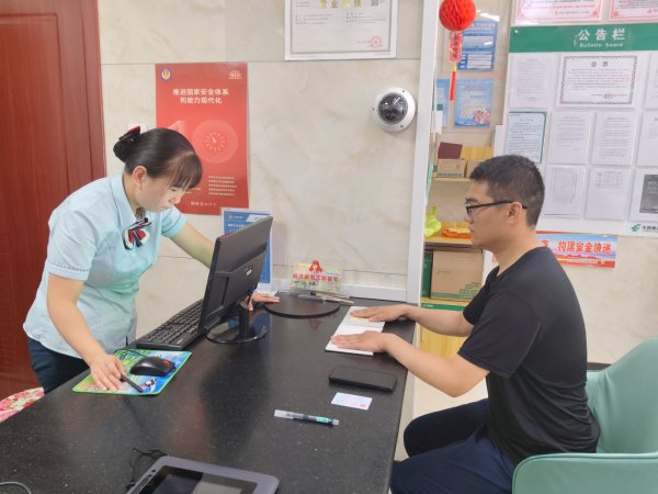金昌邮政上海路营业所营业员在为前来更换驾照的客户办理业务。