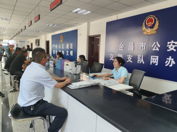金昌邮政金川区综合项目部工作人员在驻点车管所开展工作。